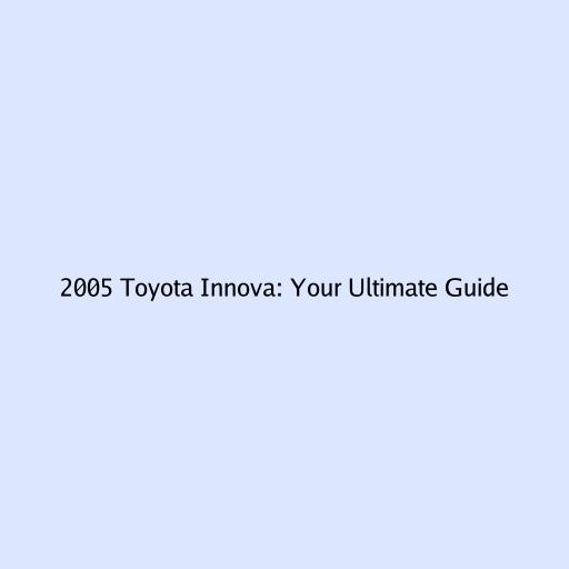 2005 Toyota Innova: Your Ultimate Guide