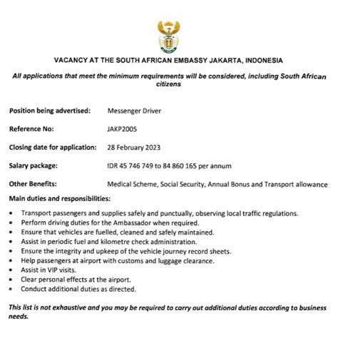 Now, let’s talk about the requirements. What do you need to actually become an administrative assistant at the Brazil Embassy in Jakarta? The specific requirements can vary, but there are some common qualifications you’ll generally need. First off, you will need a minimum level of education, such as a high school diploma or its equivalent. In some cases, a bachelor’s degree in a related field, like business administration or international relations, might be preferred or even required, so it’s always a good idea to check the specific job posting. You will also need previous experience. This usually means prior experience in an administrative or office support role. The more experience you have, the better your chances. Experience with international organizations or embassies will definitely give you a leg up. Next, there will be the necessary language proficiency, as you’ll most likely need to be fluent in English. Proficiency in Bahasa Indonesia will also be essential, and since you’ll be working at the Brazil Embassy, knowledge of Portuguese would be a huge advantage. Plus, you’ll probably have to pass a background check and security clearance, as you will be dealing with sensitive information, so you’ll need to be trustworthy. Finally, you might be required to demonstrate your skills during the application process, so be prepared for tests or interviews that assess your abilities in areas like software proficiency, communication, and organizational skills. So, basically, you will have to prove you can handle the job, speak the languages, and be a trustworthy person.