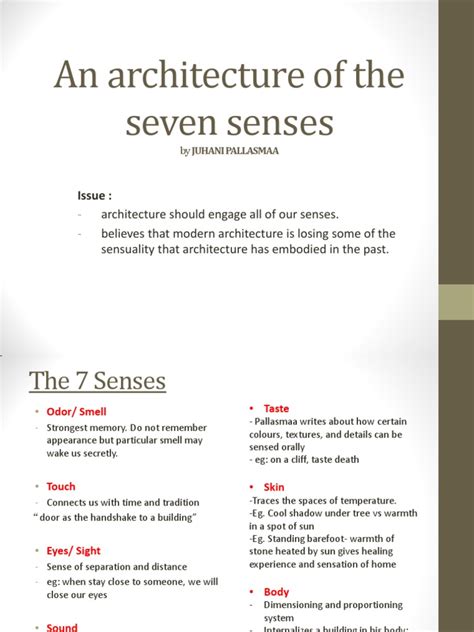 - A detailed overview of the five senses and their role in architecture.