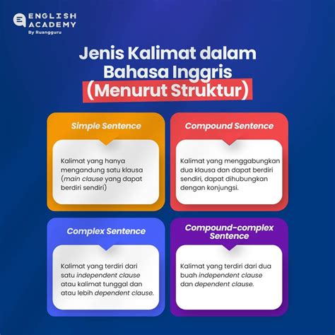 Sekarang, kita udah tau pondasinya, yaitu struktur SPO. Tapi, gak semua kalimat bahasa Inggris itu sama, guys. Ada macem-macem jenisnya, tergantung dari tujuannya. Yang pertama, ada kalimat deklaratif (declarative sentences) . Ini yang paling sering kita pake sehari-hari, buat nyatain sesuatu. Contohnya, “The sun rises in the east.” “She likes coffee.” Kalimat ini cuma ngasih informasi aja, gak pake tanda tanya atau tanda seru di akhirnya. Yang kedua, ada kalimat interogatif (interrogative sentences) , alias kalimat tanya. Ini pasti pada tau lah ya, buat nanya sesuatu. Biasanya dimulai pake kata tanya kayak What, Where, When, Why, Who, How , atau pake kata kerja bantu kayak do, does, did, is, am, are, was, were, have, has, had . Contohnya, “Where do you live?” “Are you happy?” Nah, yang ketiga, ada kalimat imperatif (imperative sentences) . Ini buat ngasih perintah atau permintaan. Seringkali subjeknya ‘you’ itu gak ditulis, tapi udah dipahami. Contohnya, “Close the door.” “Please help me.” Terakhir, ada kalimat seru (exclamatory sentences) . Ini buat ngungkapin emosi, kayak kaget, senang, atau marah. Biasanya diakhiri pake tanda seru (!). Contohnya, “What a beautiful day!” “That’s amazing!” Dengan tau jenis-jenis kalimat ini, kalian jadi lebih bisa milih kalimat yang pas buat situasi yang lagi kalian hadapi. Jadi, jangan cuma ngapal kata, tapi pahami juga fungsinya dalam sebuah kalimat.
