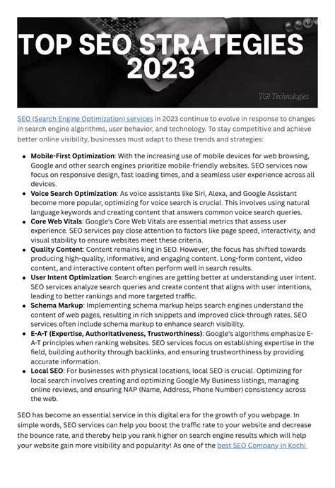 So there you have it, folks! We’ve covered the essential SEO strategies for 2023 , from nailing your keyword research and optimizing your on-page elements to building authority off-page and ensuring your technical SEO is flawless. We also emphasized the crucial roles of user experience and content marketing in this ever-evolving landscape. Remember, SEO isn’t a one-and-done task; it’s an ongoing process of learning, adapting, and refining. Stay updated on the latest algorithm changes, keep your audience at the forefront of your mind, and consistently strive to provide the best possible value . By implementing these strategies diligently, you’ll be well on your way to dominating search results and achieving your online goals. Keep up the great work, guys, and happy ranking!