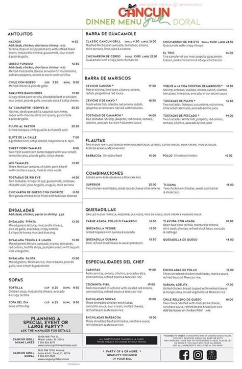 When you’re searching for a truly authentic Mexican culinary experience, the Cancun Miami Lakes menu stands out as a beacon of flavor and tradition. This isn’t just another Mexican restaurant; it’s a place where family recipes and the vibrant spirit of Cancun come together to create a dining experience you won’t soon forget. Imagine stepping through the doors and being greeted by the aroma of freshly prepared spices, the lively chatter of happy diners, and the colorful decor that transports you straight to the heart of Mexico. The Cancun Miami Lakes menu is carefully crafted to offer a wide array of dishes, each prepared with the freshest ingredients and a dedication to authentic taste. Whether you’re a fan of classic Mexican staples or eager to try something new and exciting, this menu has something to satisfy every palate. From the sizzling fajitas that arrive at your table with a flourish to the comforting warmth of a traditional mole sauce, every dish tells a story. And let’s not forget the drinks! Their margaritas are legendary, perfectly blended and served with a smile. So, gather your friends and family, and prepare for a culinary journey that celebrates the rich and diverse flavors of Mexico, right here in Miami Lakes.