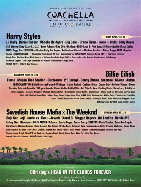 Beyond these major acts, the festival featured numerous other artists who brought diverse global sounds, from Afrobeat to K-Pop, showcasing Coachella’s commitment to a truly international lineup. These artists contributed to the rich tapestry of sounds and cultures present at the festival, making it a melting pot of musical experiences. The exploration of different genres and cultural influences added a unique depth to the festival, offering attendees a chance to discover new music and broaden their horizons. The inclusion of such a varied lineup ensures that Coachella remains a platform for global musical discovery and celebration.