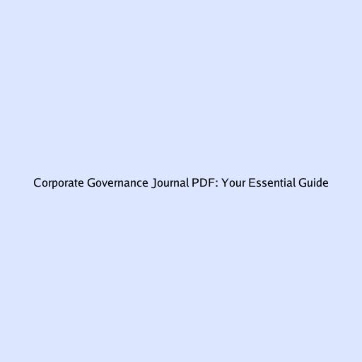 Corporate Governance Journal PDF: Your Essential Guide