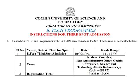 Hey guys! Ever dreamt of studying at Cochin University of Science and Technology (CUSAT) but missed the regular admission rounds? Well, don’t lose hope just yet! CUSAT spot admissions might be your golden ticket. Let’s dive into everything you need to know about CUSAT spot admissions, making sure you’re well-prepared and ready to seize the opportunity. Spot admissions can be a nerve-wracking process, but with the right information and a bit of preparation, you can navigate it successfully. CUSAT, renowned for its excellent academic programs and vibrant campus life, is a dream destination for many students. The spot admission process allows the university to fill any remaining vacant seats after the regular admission rounds, offering a second chance to aspiring students. Understanding the intricacies of this process, from eligibility criteria to the application procedure, is crucial for maximizing your chances of securing a seat. So, buckle up and let’s get started on this exciting journey toward potentially joining one of the premier science and technology universities in India!