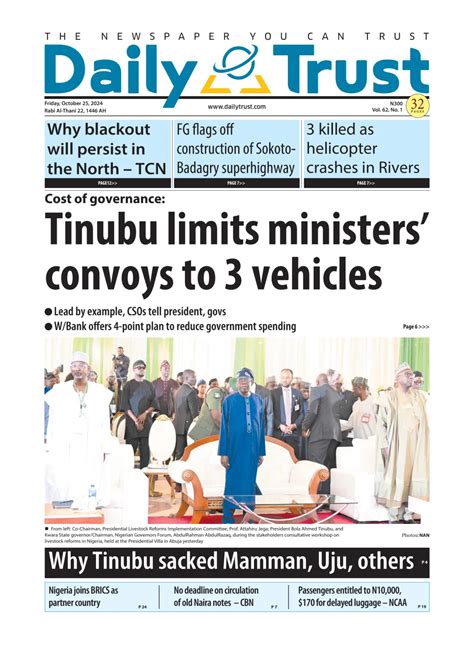 When we look at the front page, we’re essentially getting a curated selection of the day’s most impactful news. Think about it: the editors at Daily Trust have to make tough decisions about what deserves the prime real estate. This usually involves stories with national significance, those that affect a large segment of the population, or those that represent a turning point in a particular sector. It’s not just about reporting facts; it’s about highlighting the narratives that are shaping Nigeria’s present and future. We’ll be looking at how these stories are framed, what angles are being emphasized, and what messages Daily Trust seems to be conveying through its front-page choices. It’s a fascinating peek into the media’s role in shaping public discourse, and we’re here to guide you through it. So, pay close attention, because the details on that front page often carry more weight than you might initially think.