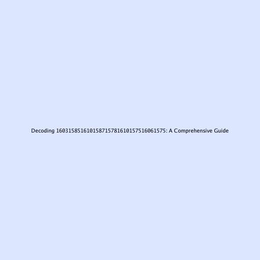 Decoding 160315851610158715781610157516061575: A Comprehensive Guide