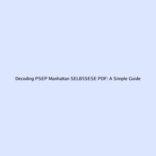 Decoding PSEP Manhattan SELB5SESE PDF: A Simple Guide