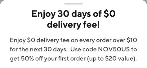 • Free Delivery: Some promo codes offer free delivery on your first order. This can save you a few dollars on delivery fees.