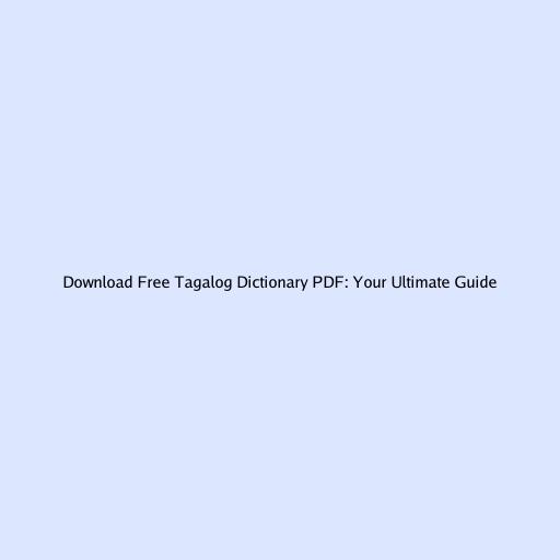 Download Free Tagalog Dictionary PDF: Your Ultimate Guide