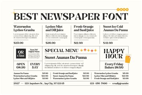 • Readability is Key: Newspaper fonts are all about readability. Choose fonts that are easy to read in small sizes and long blocks of text. Avoid overly decorative or stylized fonts for body text.