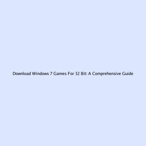 Download Windows 7 Games for 32 Bit: A Comprehensive Guide