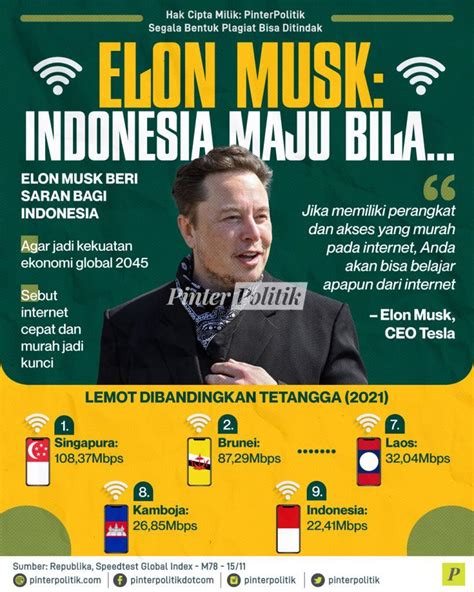 So, what exactly has Elon Musk said about Indonesia? This is where things get really interesting. One of the most talked-about instances involved Starlink , his satellite internet service. There were reports and discussions about Starlink potentially launching or expanding its services in Indonesia. This makes a ton of sense, right? Indonesia, being an archipelago with thousands of islands, faces significant challenges in providing reliable internet access to all its citizens. Remote and underdeveloped areas often suffer from poor connectivity. Starlink, with its satellite-based approach, is perfectly positioned to bridge this digital divide. Musk, or representatives from SpaceX, have acknowledged this potential. While concrete launch dates and specifics might be fluid, the mention itself signifies a serious consideration. It’s not just a pipe dream; it’s a business opportunity that aligns with Starlink’s mission to bring internet to underserved regions globally. Beyond Starlink, there have been discussions and speculations about potential Tesla interest. Indonesia has been actively trying to attract EV manufacturing and battery production, leveraging its rich nickel reserves. While Musk himself hasn’t made a direct, massive investment announcement yet , his companies are clearly watching. Any hint of Tesla looking at Indonesia for production facilities or sourcing raw materials would be monumental. Imagine Tesla setting up shop there – it would be a game-changer for the Indonesian automotive industry and economy. It’s also worth noting that these mentions often come in the context of broader global expansion plans. Musk is always thinking big, and Indonesia, with its immense market size and strategic importance, is a logical piece of that puzzle. So, while we might not have a long list of direct quotes from Musk personally about Indonesia on every single topic, the implication and the focus of his companies’ activities and discussions clearly point to Indonesia being on his radar. It’s about the potential, the market, and the strategic alignment – all factors that are crucial for someone aiming to revolutionize multiple industries on a global scale. Keep your ears open, because these mentions often precede significant developments!