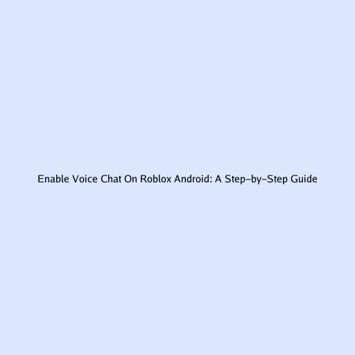 Enable Voice Chat On Roblox Android: A Step-by-Step Guide