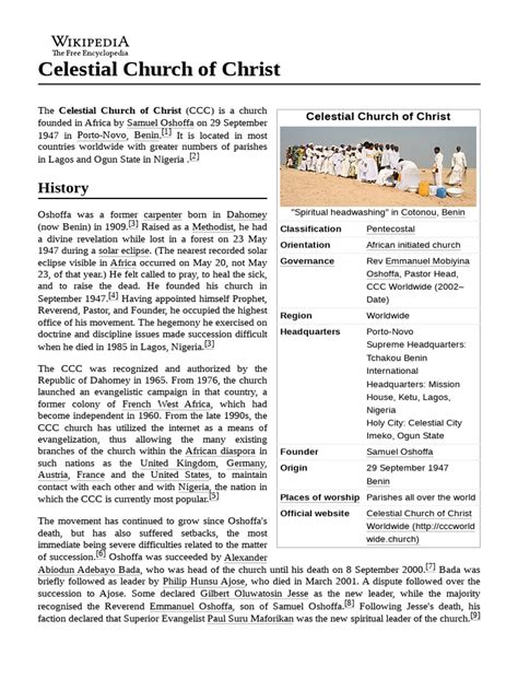 Hey everyone, let’s dive into something really interesting today: the Celestial Church of Christ . You might have heard of it, or maybe this is your first time encountering the name. Whatever the case, buckle up, because we’re going to explore what makes this church so unique and why it holds such a special place in the hearts of its members. This isn’t just another religious organization; it’s a vibrant community with a rich history, distinct practices, and a profound spiritual mission. We’ll be looking at its origins, its core beliefs, its distinctive worship style, and the impact it has had on its followers and the wider world. Get ready to be enlightened, guys!