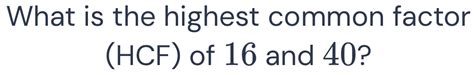 Find The Highest Common Factor Of 8 And 40