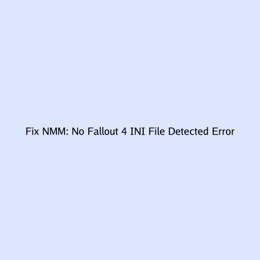• Incorrect File Locations: NMM expects the INI files to be in a specific directory, usually within your Documents folder under My Games\Fallout4 . If the files are moved or missing, NMM won’t find them.