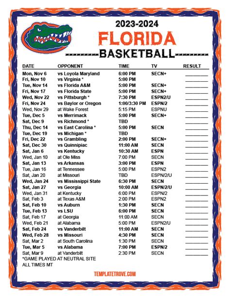 Get ready for an exciting season, Gator fans! The Florida Gators basketball team schedule is set, and it promises a thrilling ride filled with intense competition and unforgettable moments. Go Gators!