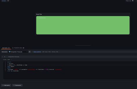 3. Configure the Data Query: Select your data source and write a query to retrieve the database connection status. For example, the query may return a value of 1 if the connection is active and 0 if it is down. The exact query will depend on your database and monitoring setup. For instance, if you are using Prometheus and the metric is db_connection_status , your query might look like db_connection_status{instance="your-db-instance"} .