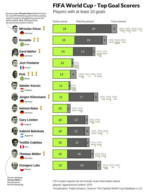 Another German legend who features prominently in the annals of World Cup scoring is Gerd Müller . Affectionately known as ‘Der Bomber’, Müller terrorized defenses during his era, racking up an impressive 14 goals in just two World Cups (1970 and 1974). Müller was a pure goal-scoring machine, possessing an uncanny ability to find the back of the net from seemingly impossible angles. His predatory instincts in the penalty box were second to none, and he had a knack for being in the right place at the right time. In the 1970 World Cup, he was the tournament’s top scorer with 10 goals, a feat that still stands as one of the highest single-tournament tallies. His goals were crucial in driving West Germany to numerous victories, showcasing his immense importance to the national team. In the 1974 World Cup, held on home soil, Müller continued his scoring prowess, netting the winning goal in the final against the Netherlands, a moment that secured Germany’s second World Cup title. This goal alone cemented his legendary status. Müller’s record is even more remarkable considering he achieved it in fewer appearances than some of his contemporaries. His efficiency and clinical finishing were simply outstanding. He was a true embodiment of German efficiency on the football pitch, a relentless striker who consistently delivered when it mattered most. His scoring record speaks volumes about his talent and his impact on the game during his time. He set a standard for goalscoring that few could match, and his name is forever associated with the golden era of German football. His legacy is one of consistent excellence and a remarkable ability to perform under pressure, a true testament to his skill and dedication. Müller’s 14 goals are a significant achievement, placing him among the elite of World Cup strikers, a group of players who have defined goalscoring greatness on the global stage.