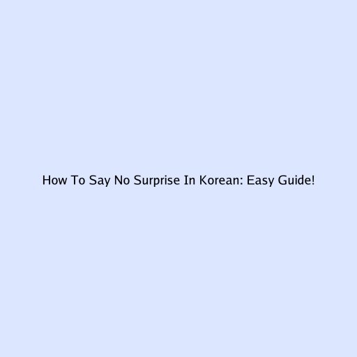 How To Say No Surprise In Korean: Easy Guide!