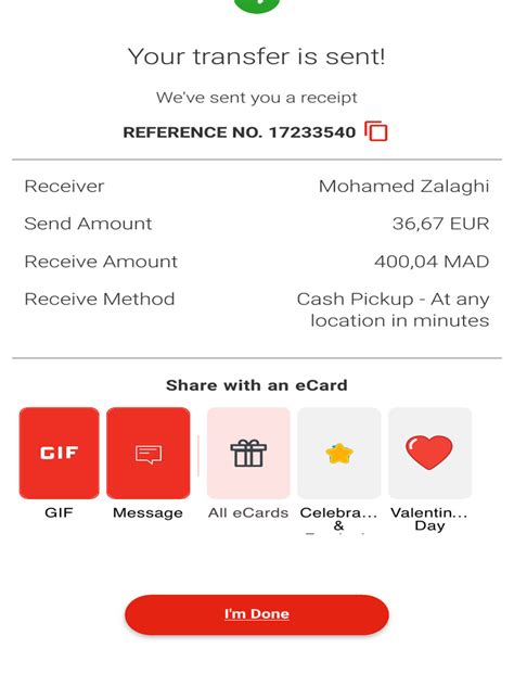 • Receive Confirmation: Once the transaction is complete, you’ll receive a receipt with a reference number. Share this number with the recipient so they can pick up the money.