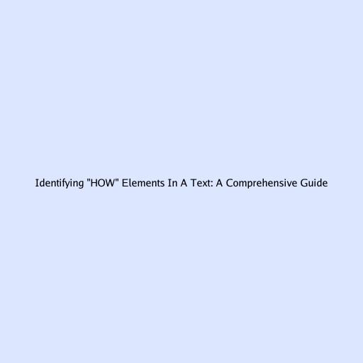 Identifying "HOW" Elements In A Text: A Comprehensive Guide