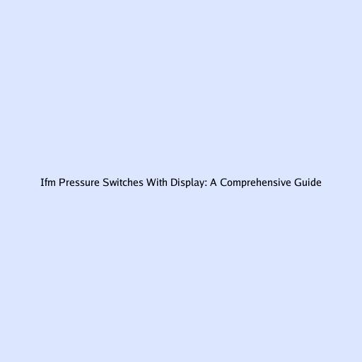 Ifm Pressure Switches With Display: A Comprehensive Guide