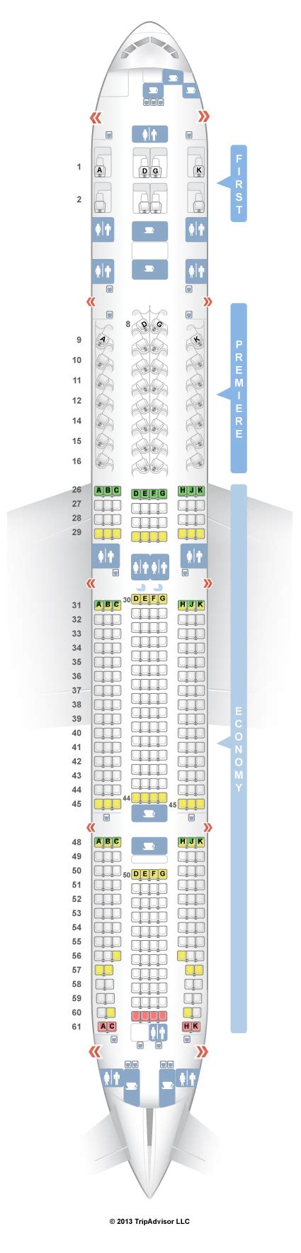 Let’s start with the lap of luxury: First Class. On the Jet Airways 777 seat map , First Class is typically found at the very front of the aircraft. Think of it as the exclusive club – usually just a handful of seats, offering unparalleled space and service. These seats are often fully enclosed suites, complete with lie-flat beds, gourmet dining, and dedicated service. On the Jet Airways 777 seat map , you’ll usually see these seats in a 1-2-1 configuration, meaning there are no middle seats, which is always a win! The exact number of seats can vary, but it’s generally quite intimate, maybe 4 to 8 seats. If you manage to snag a First Class seat on a Jet Airways 777, you’re in for a treat. The best seats here are subjective, but often the window seats (A and K) offer more privacy, while the aisle seats (C and H) provide easy access. However, with only a few seats, any First Class option is usually a fantastic choice. The Jet Airways 777 seat map in this section highlights the airline’s commitment to premium travel. It’s important to note that while Jet Airways is no longer flying, understanding these premium cabin layouts is valuable for comparing with current offerings from other airlines. The Jet Airways 777 seat map for First Class serves as a benchmark for what top-tier air travel used to look like.