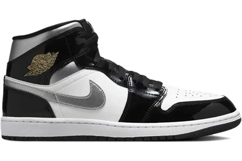 Alright, guys, let’s talk about the look. The Jordan 1 Mid Metallic Black is all about that sleek, sophisticated vibe. The colorway is the star of the show, featuring a predominantly black upper that gives it a super clean look. Then comes the magic touch: the metallic accents. These are usually found on the iconic Swoosh, the Wings logo, and sometimes the tongue tag or other small details. The metallic finish adds a premium feel and makes the shoe pop, especially in the light. It’s that subtle touch of bling that takes it from a regular sneaker to something special. The materials used are typically a mix of leather and synthetic overlays, providing both durability and a premium feel. The leather often has a nice texture, contributing to the overall aesthetic. The midsole is usually white, which provides a stark contrast to the black upper, and the outsole is black, completing the monochromatic theme. This color scheme makes the Jordan 1 Mid Metallic Black incredibly versatile. You can pair it with pretty much anything in your wardrobe, from jeans and a tee to something a bit more dressed up. The design is a nod to the original Air Jordan 1, but with a modern twist. The Mid version has a slightly lower cut than the High, which adds to its versatility and makes it easier to wear with different outfits. The metallic details are what sets this particular colorway apart, giving it that unique edge that turns heads. The details, like the stitching and the shape of the panels, are all meticulously crafted, showcasing the quality you expect from a Jordan. The Jordan 1 Mid Metallic Black is a true testament to how a classic design can be updated to stay fresh and relevant in the ever-changing world of fashion. It is a timeless piece that always makes a statement without trying too hard, effortlessly cool.