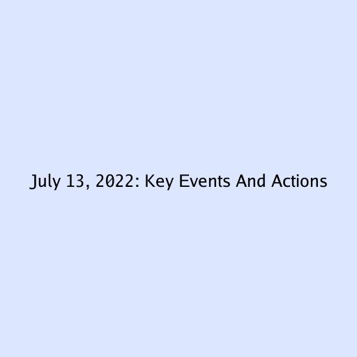 July 13, 2022: Key Events And Actions