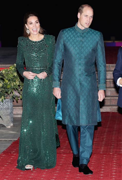 The evening reception called for a more glamorous affair, and Kate Middleton’s Pakistan attire did not disappoint. She opted for a breathtaking emerald green ensemble by Jenny Packham. This designer is a firm favorite of Kate’s, known for her elegant and sophisticated evening wear. The emerald green tunic was expertly tailored, featuring subtle, sparkling embellishments that caught the light beautifully. It was paired with matching trousers, creating a sleek and modern silhouette. However, the real showstopper was the addition of a stunning, heavily embroidered dupatta. This dupatta, rich in color and detail, clearly drew inspiration from Pakistani craftsmanship, artfully bridging the gap between Jenny Packham’s British design and the local aesthetic. The contrast between the sleek lines of the tunic and the intricate traditional detailing of the dupatta was striking and incredibly effective. It was a masterclass in combining personal style with cultural respect. This outfit perfectly encapsulated the theme of the tour: a blend of tradition and modernity, of British heritage and Pakistani vibrancy. Kate wore it with undeniable poise, cementing her status as a fashion icon who understands the power of thoughtful dressing. The overall effect was regal, sophisticated, and deeply appreciative of Pakistani artistry, making it one of the most memorable looks of the tour.