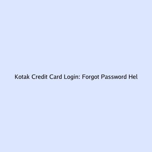 Kotak Credit Card Login: Forgot Password Help