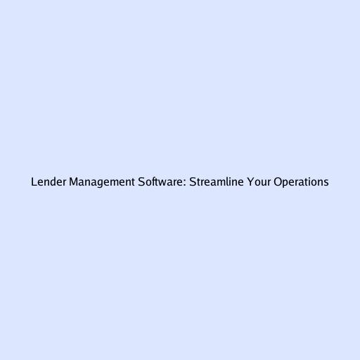 Lender Management Software: Streamline Your Operations