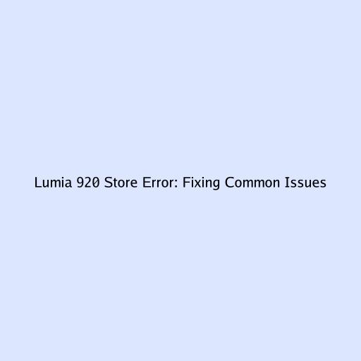 Lumia 920 Store Error: Fixing Common Issues