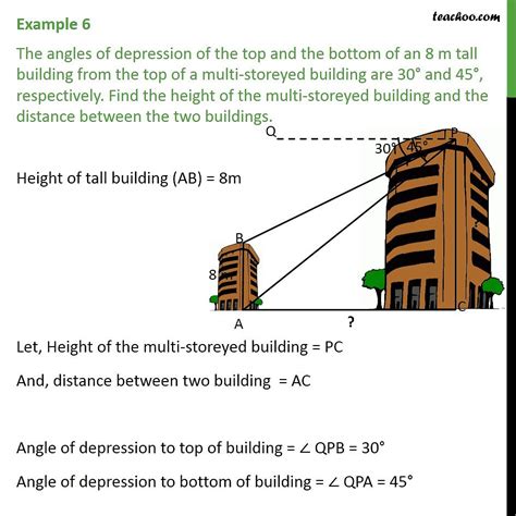 Alright, it’s time to put all this knowledge into action with a concrete example! This is where we truly conquer the challenge of the angle of depression of the top and the bottom of an 8m tall building . Let’s set up a scenario: Imagine you’re an observer standing on a high platform. From your vantage point, you observe the angle of depression to the top of an 8m tall building to be 30 degrees. Simultaneously, you find the angle of depression to the bottom of the same 8m tall building to be 45 degrees. Our goal here, guys, is to determine two crucial things: first, the horizontal distance from your platform to the building, and second, your total height above the ground. This is a classic setup that perfectly demonstrates the power of the trigonometric ratios we just discussed.