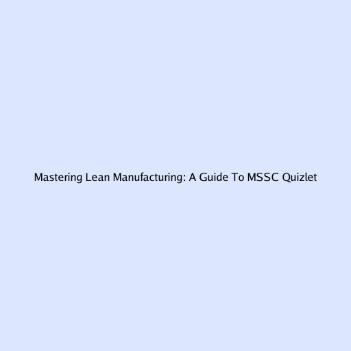 Mastering Lean Manufacturing: A Guide to MSSC Quizlet