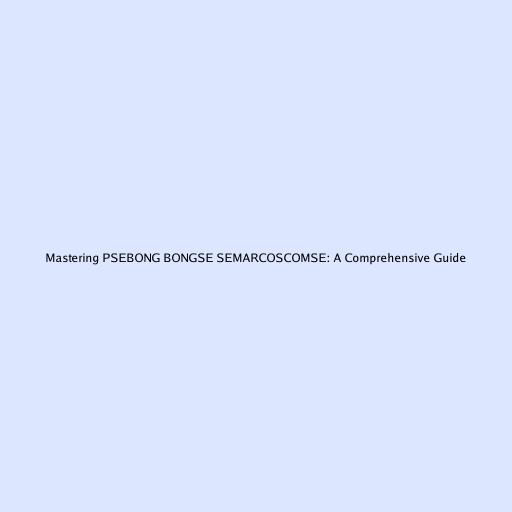 Mastering PSEBONG BONGSE SEMARCOSCOMSE: A Comprehensive Guide