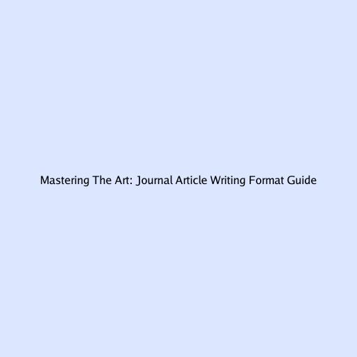 Mastering The Art: Journal Article Writing Format Guide