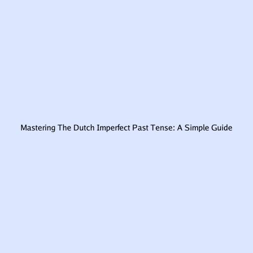 Mastering the Dutch Imperfect Past Tense: A Simple Guide