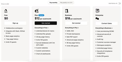 When we talk about Notion AI pricing , it’s crucial to understand how it stacks up against the different Notion plans themselves. While the AI add-on is a flat fee per user, your overall Notion cost depends on the plan you’re on. Let’s break this down, shall we? For individuals , the Notion Free plan is, well, free! You get core Notion features, and as we discussed, limited AI usage. If you need more advanced features like unlimited block history, file uploads, or custom branding, the Notion Plus plan is available at \(8 per user per month (billed annually) or \) 10 per user per month (billed monthly). Add Notion AI to this, and you’re looking at \(16-\) 20 per user per month total, depending on your billing cycle. Then there are the team-focused plans. The Notion Business plan is designed for larger teams and organizations needing features like private team spaces, advanced page analytics, and stronger permissions. This plan is priced at \(15 per user per month (billed annually) or \) 18 per user per month (billed monthly). If you add Notion AI to this, you’re looking at \(23-\) 28 per user per month. Finally, for enterprises, Notion Enterprise offers custom solutions with advanced security, dedicated support, and workspace analytics. The pricing here is custom and requires contacting their sales team. However, the Notion AI add-on at \(8-\) 10 per user per month still applies on top of whatever Enterprise package you negotiate. So, the Notion AI pricing is consistent, but your total bill is a combination of your base Notion plan and this AI add-on. It’s really about choosing the Notion plan that best fits your team’s needs for collaboration, security, and features, and then layering on the AI power. This tiered structure ensures that businesses of all sizes can find a solution that works for them, from a solopreneur experimenting with AI to a multinational corporation needing robust features and support. It’s a scalable model that grows with you.
