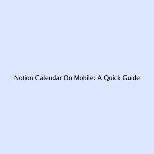 Notion Calendar On Mobile: A Quick Guide