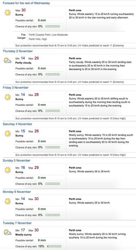 Alright, let’s get down to business with the 7-day weather forecast for Perth . We’ll walk you through each day, giving you the lowdown on what to expect. Remember, forecasts can change, so it’s always a good idea to check back for updates, especially if you have major outdoor plans.