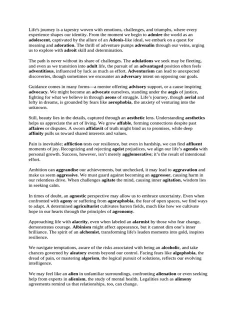 Another one is “xenophobia,” the fear or dislike of strangers or foreigners. This one is super relevant in today’s world. We also have “acrophobia,” the fear of heights, and “arachnophobia,” the fear of spiders. You probably know people who have these phobias. This is a very interesting subject. It’s important to remember that these aren’t just words; they represent real experiences and anxieties. These are very serious issues, and they are things people deal with on a daily basis. The more we understand these words, the more empathetic and informed we can be. By exploring these common words, we’re building a foundation for understanding the more complex ones. The significance of this section lies in its ability to connect these words with real-world scenarios. We’re essentially giving ourselves a vocabulary that can discuss very complex and relevant issues.