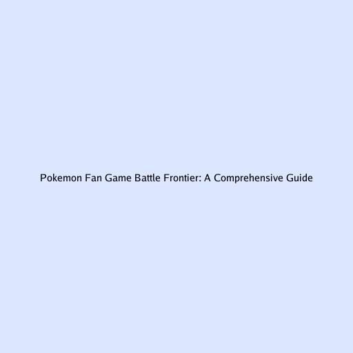 Pokemon Fan Game Battle Frontier: A Comprehensive Guide