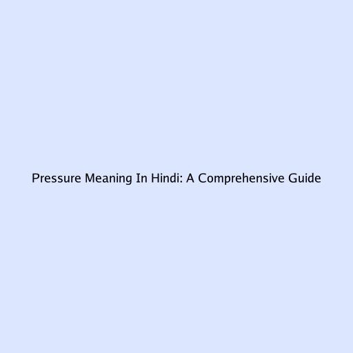 Pressure Meaning In Hindi: A Comprehensive Guide