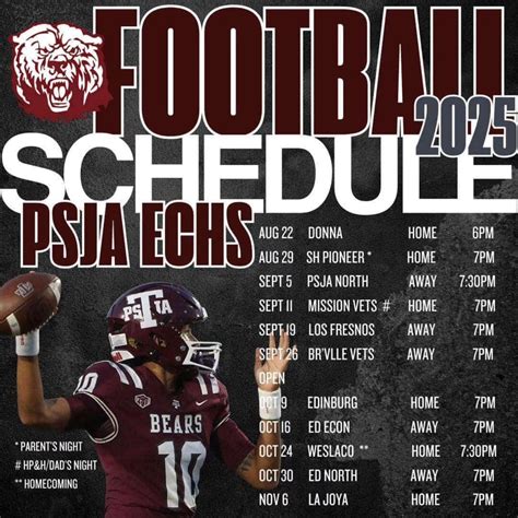 Hey football fans! Are you ready for some action? If you’re a follower of PSJA football , you’re in the right place! We’re diving deep into everything you need to know about the PSJA football schedule . This is your go-to guide for game dates, times, and all the juicy details to keep you in the know. Let’s get started and make sure you don’t miss a single snap of the upcoming season, right? Get ready to mark your calendars because we’re about to break down the entire schedule for you. Keep in mind that schedules are subject to change, so always double-check the official PSJA ISD Athletics website or your favorite sports app for the most up-to-date information. Let’s make sure you’re well-prepared for all the gridiron battles. Are you excited? I know I am!