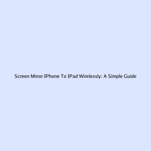 Screen Mirror IPhone To IPad Wirelessly: A Simple Guide