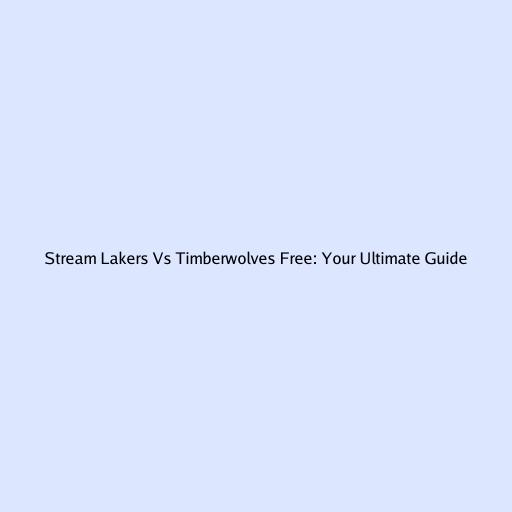 Stream Lakers Vs Timberwolves Free: Your Ultimate Guide