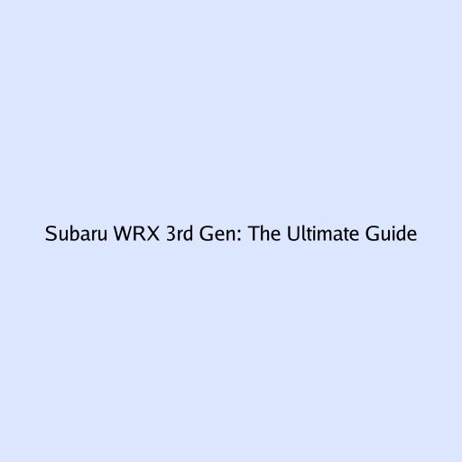 Subaru WRX 3rd Gen: The Ultimate Guide